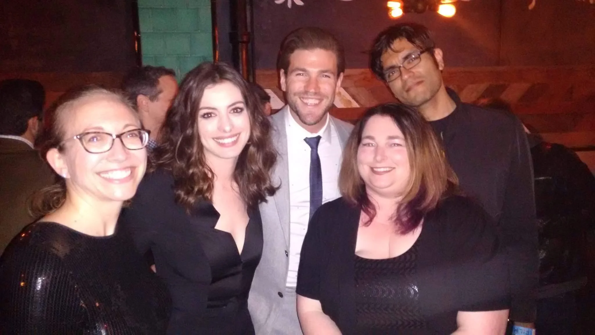 When the show ended, the audience filed out of the theater. The Legion M team met outside, and we gathered around Nacho, Nichelle, and Kerry O'Quinn for a photo opp. We walked a few blocks down the street to Umami Burger where the after party was in full swing. People packed into the relatively small restaurant and navigating the floor proved challenging for everyone. The Colossal actors mingled with people close to them while their bodyguards tried to blend into the crowd, and we made our way towards them. Aaron became a superhero for the night and introduced MeriJewel and I to Jason, Anne, and Austin, and he convinced them to take photos with us. I hadn't felt like that kind of a giddy dork in years!